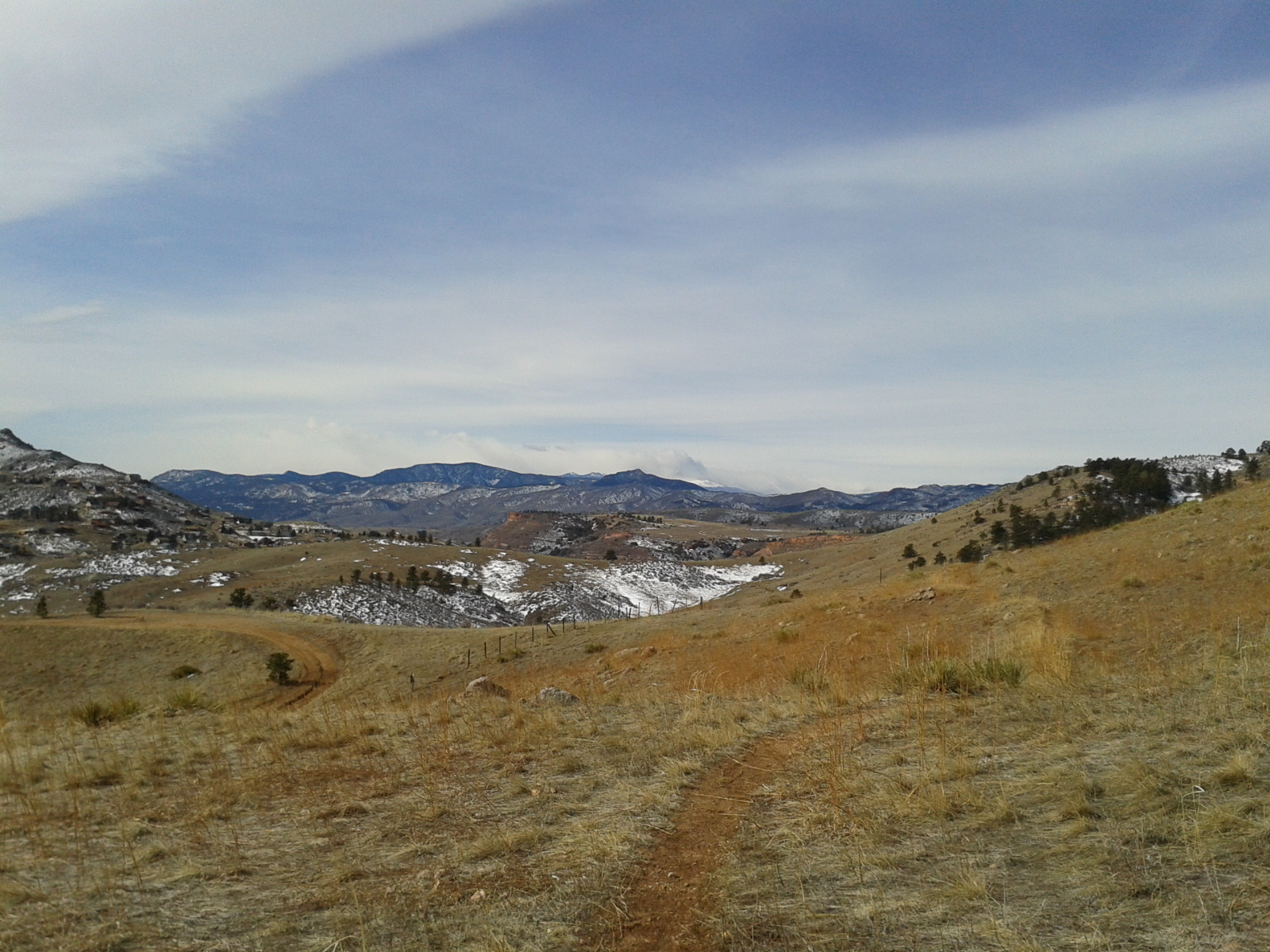 Tuesday: 12 miles, Foothills trail and Reservoir Ridge, 2500ft of gain. East of the ridge, on the hillside and the Plains, it was hovering in the mid-30's; immediately upon crossing the top of the ridge toward the reservoir, I was plunged into the mid-50's! Talk about cold-pooling. I think I set a new record for this route, which I'm sure I'm bound to do as I continue to repeat it and get more comfortable with the gnarly downhills north of Laporte on the Foothills trail.